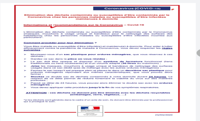 Elimination des déchets contaminés ou susceptibles d’être contaminés par le Coronavirus