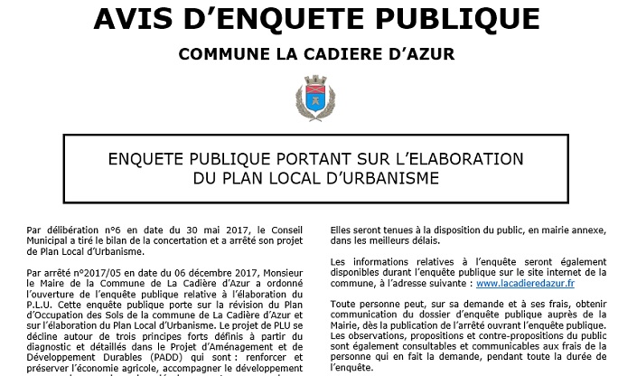 ARRETE MAIRE OUVERTURE ENQUETE PUBLIQUE PLU Avis d’enquête publique – Elaboration du PLU Sommaire du dossier